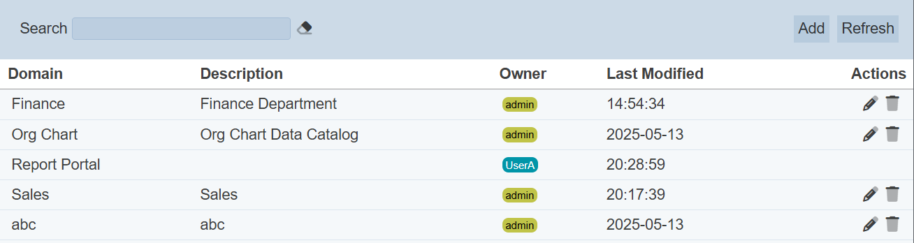 After performing actions on the browser/tab, the list is reloaded to display the Business Glossary. The manual “Refresh” button is available and is particularly useful if there are others making changes on the same page.