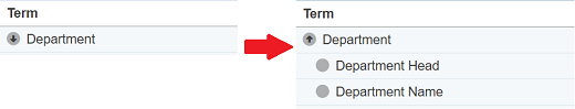 “Collapse” icons on the left of the term to show/hide the sub-terms.