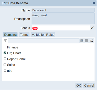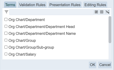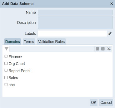 | Terms | Selects the terms for the data schema. | N | Select one |