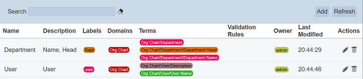 | Labels | Defines labels for the data schema. More than one can be added. |
