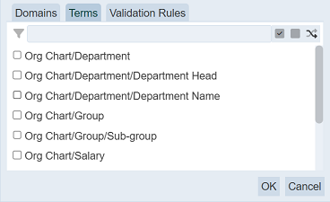 In the “Terms” tab, select the checkboxes of the desired terms from the list. More than one can be selected.