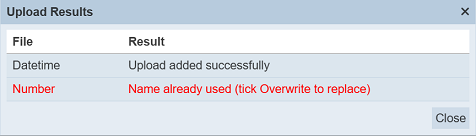 Those results in black are uploaded successfully while those in red indicates upload failures with their relevant messages. Click on the “Close” button to close the dialog box.