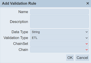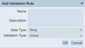 Key in a unique name for the new validation rule in the “Name” field. Provide a brief description in the “Description” field.