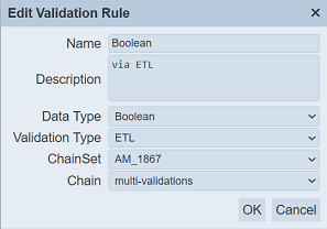 | Name | Unique name assigned to the validation rule. | Y | Any text (case-sensitive) | Empty |