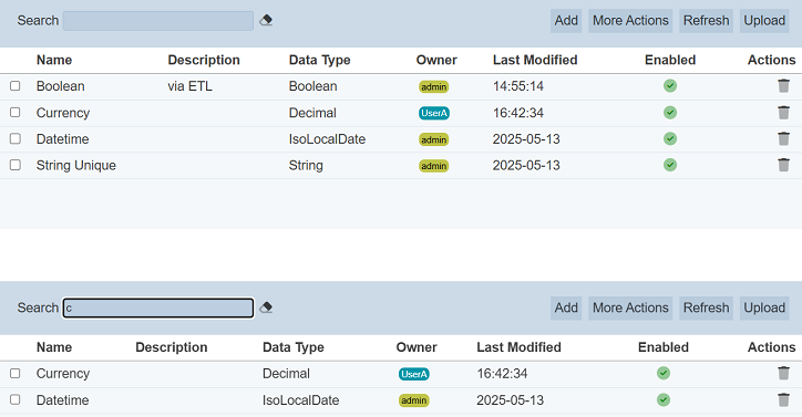 This provides an easy way to search through the list. It is case-insensitive and displays records that have the entered search value in any of the values of the fields below: