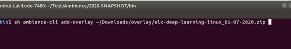 In the terminal, key “sh-ambience-cli add-overlay <overlay’s path>” command and press the “Enter” key.