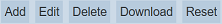 | Action Buttons | Buttons that allows you to perform the following actions on the records. - Add - Edit - Delete - Download - Reset |