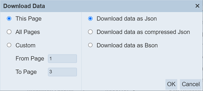 The options on the left portion allows you to select the page of the data to be download. By default, “This Page” is selected. The “From Page” and “To Page” will only be available when the “Custom” option is selected.