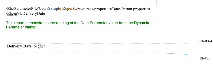 A parameter is “declared” when a user enters a string like ${parameterName} within a DocX report. A parameter is defined when a value is supplied. A report may have multiple declarations and mixed with normal text. Below is an example: