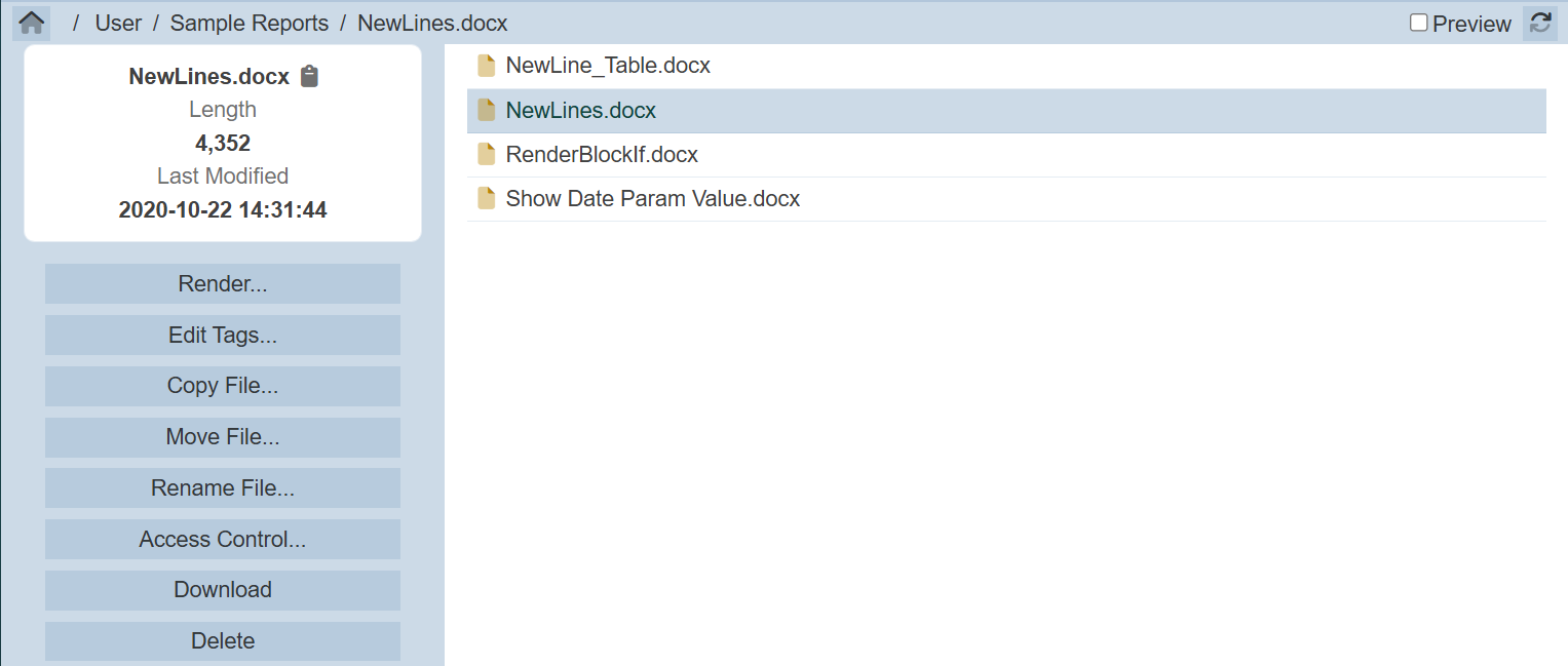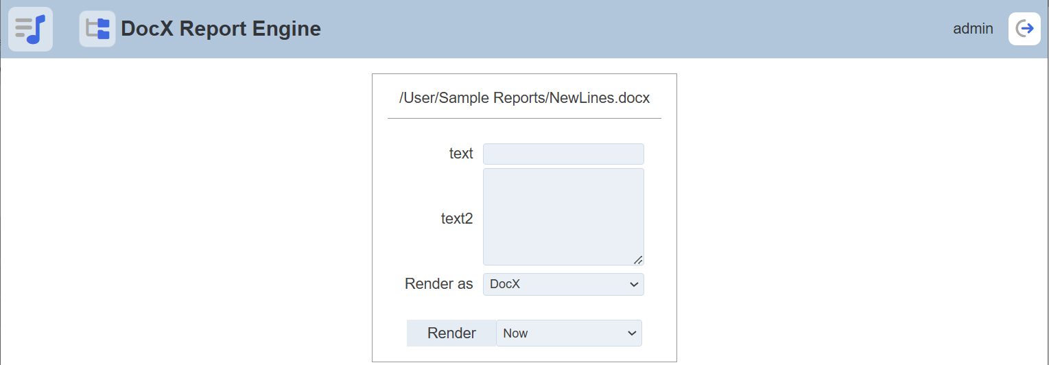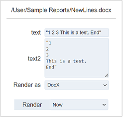 Save the above code in a DocX file (in this case, its NewLines.docx) and load it into the Repository module. In the Repository module, select the above DocX file and click on the “Render” button.