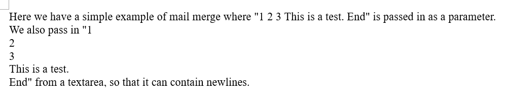 Here we have a simple example of mail merge where ${text] is passed in as a parameter.
