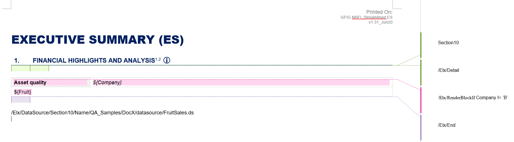 The following sub-sections are examples of how reports can be generated using some DocX template elements.