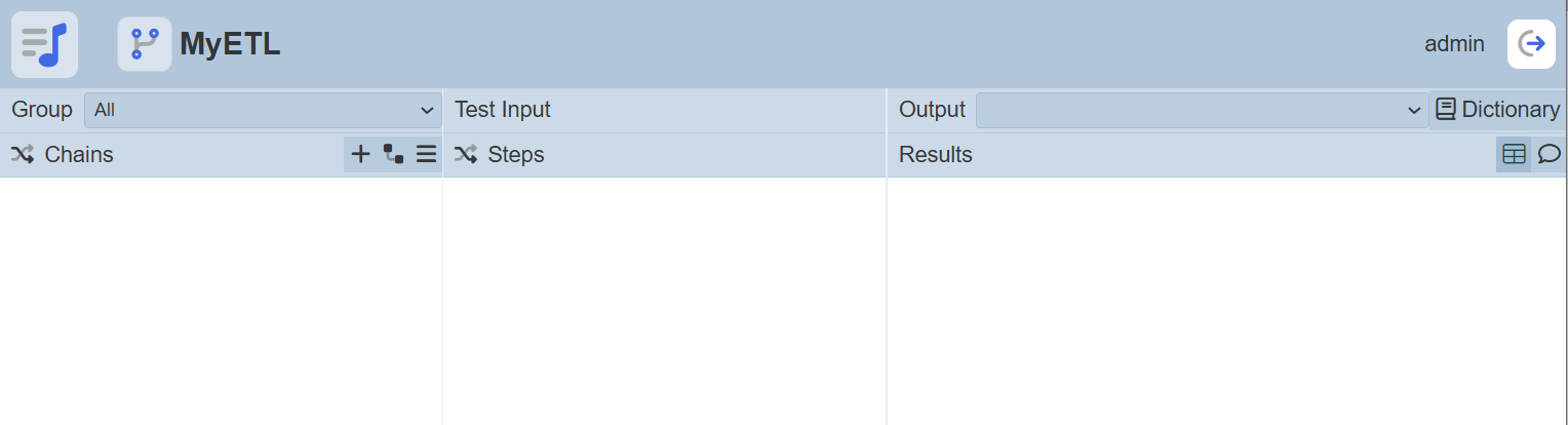 The “Dictionary” button at the upper right corner of the page when clicked, displays a page which allows you to search for the ETL step along with their description.
