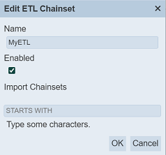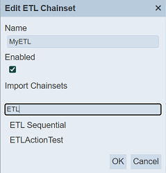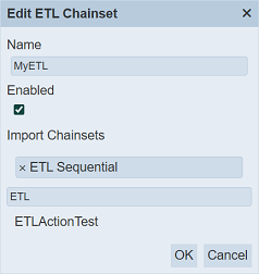 The “Edit ETL CHainset” dialog box displays the selected chainset’s attributes.