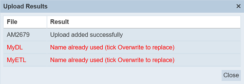 Those results in black are uploaded successfully while those in red indicates upload failures with their relevant messages. Click on the “Close” button to close the dialog box.