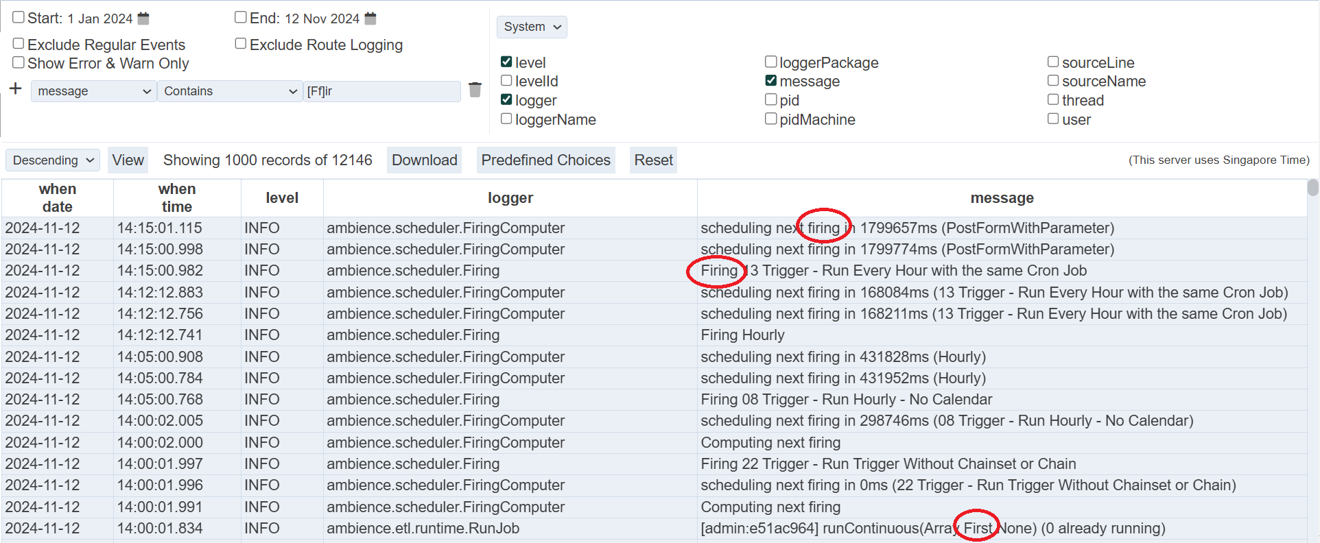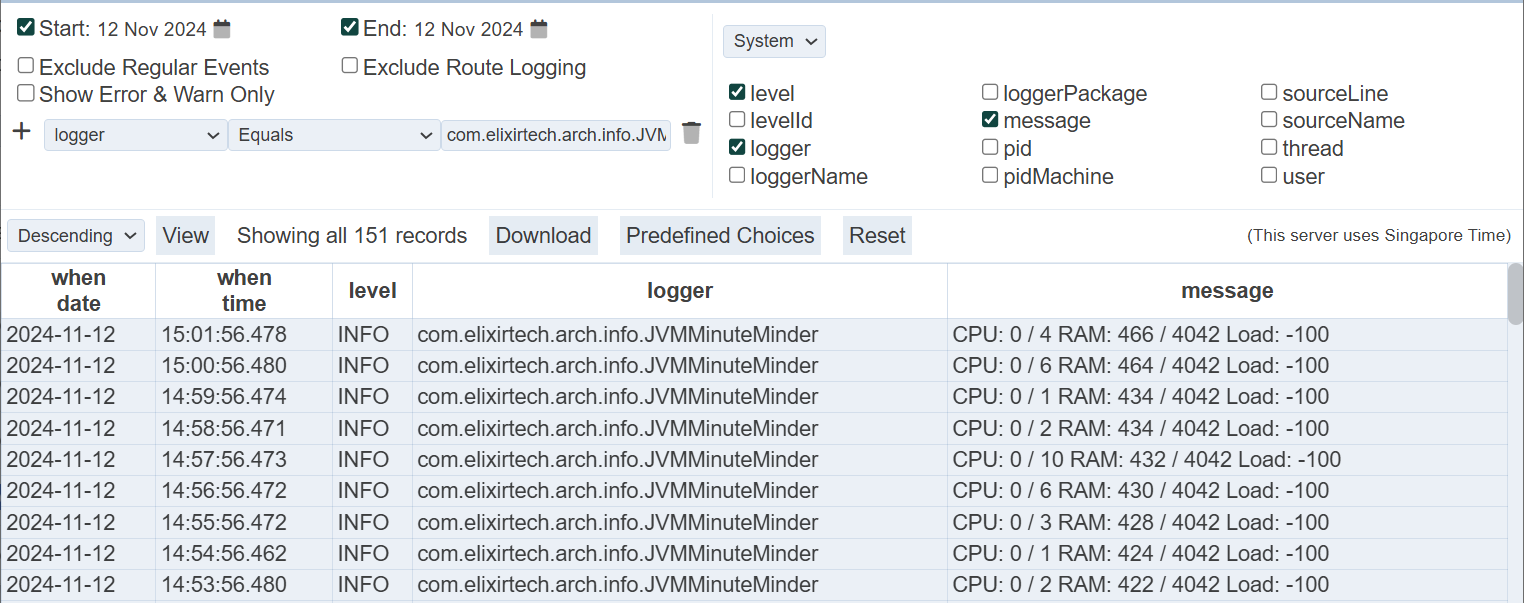 Note the “When” option “run” is the unique value for which server session. If you are only interested in things that happened this time you ran the server, then look at the system information:
