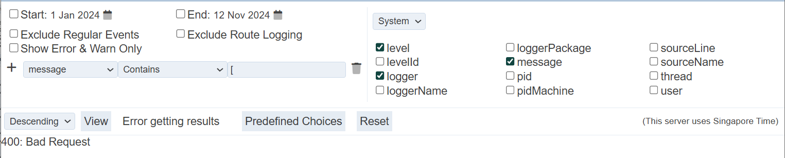 By default, it is in descending order. To view the logs in ascending order, select “Ascending” from the drop-down list on the left of the “View” button.