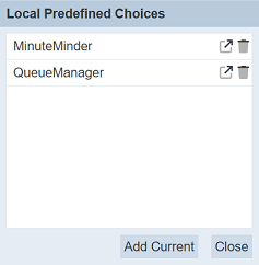 “Delete” icon on the right of the desired choice. The predefined choice will be removed from the list. Click on the “Close” button to close the dialog box.