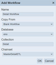 Selects eno as the database, Detail as the collection and selects Master-Detail chainset in the dialog box.