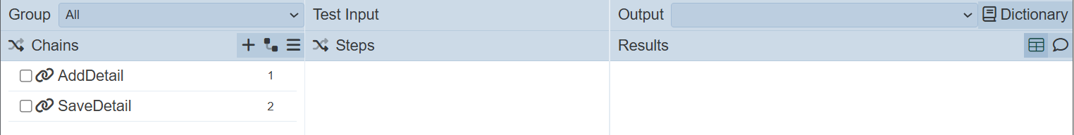In the Master-Detail ETL chainset, select the SaveDetail under the “Chains” column. In the “steps” columnm click on the “+” icon to add two steps into the chain.