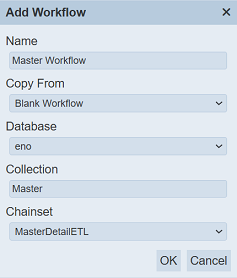 Selects eno as the database, Master as the collection and selects Master-Detail chainset in the dialog box.