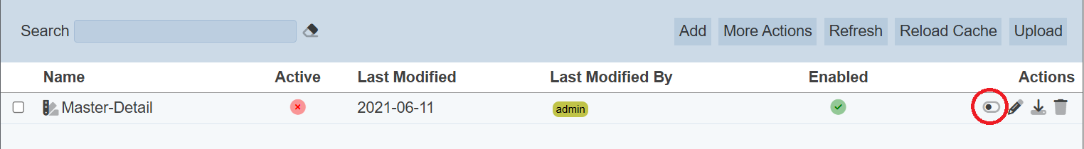 Go back to the Themes management page. Click on the “Enable” icon under the “Actions” column corresponding the Master-Detail theme.