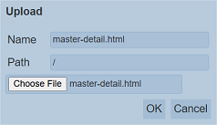 In the “Upload” page, browse to the location of the master-detail.html file. Left the “Path” field empty (i.e., top level). Click on the “Save” button to save the file.