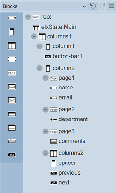 In the Forms module, create a new form with three pages in the following hierarchy: