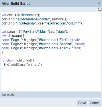 In the “After Build Script” property of the Root component, enter the following scriptto add a bit os styling to the sidebar.