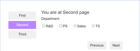 To go to the “Page 2”, either click on the “Second” button on the sidebar or click on the “Next” button at the bottom right of “Page 1” in the form.