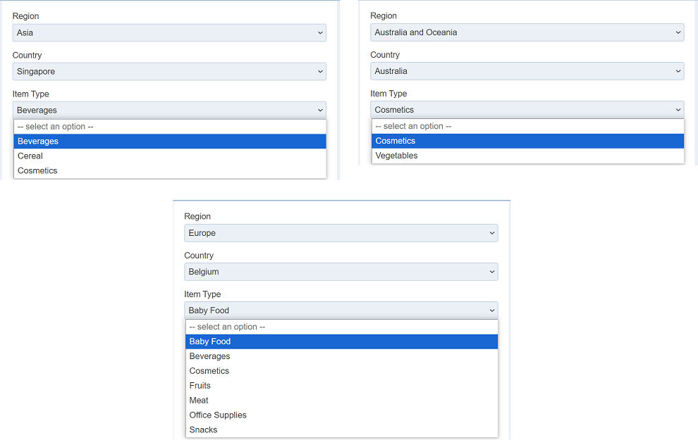 The Cascade Group component allows you to create cascading input selects using the dataset defined. The data for the next input select depends on the selection from the previous input select. There can be any number of such selects.