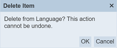 To confirm, click on the “OK” button to delete the language. Click on the “Cancel” button aborts the action.
