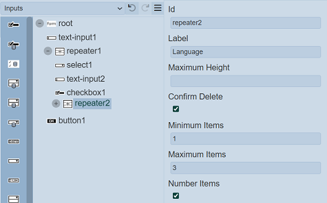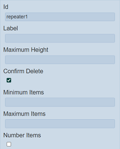 | Minimum Items | Defines the minimum number of repeaters. | None |