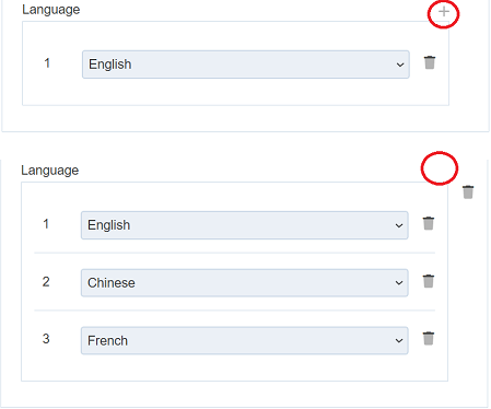 Click on the “+” icon on the right of the “Language” and select the desired language. Once the maximum number of languages are added (in this case its “3”, the “+” icon will disappear.