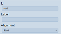| Alignment | Defines the alignment of the components in the Row (for Row only). Available options: - Start - Centre - End |