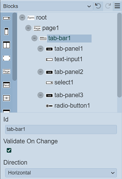 To enhance the error handling, in the “tab-bar1” component, select the field “Validate On Change”.