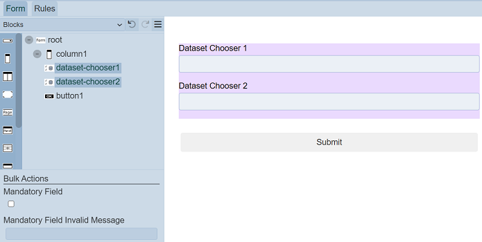 | Dataset Select | Allows you to add dataset selection options onto the form. |