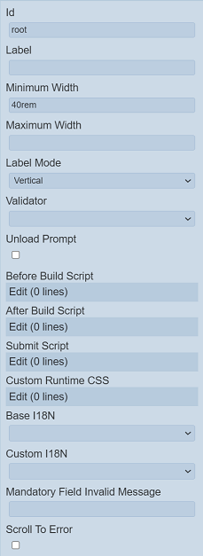 | Id | Name of the root that will be displayed in the form structure. | “root” |