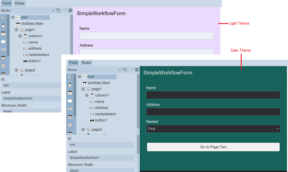 | Minimum Width | Defines the minimum width of the form. | “40rem” |