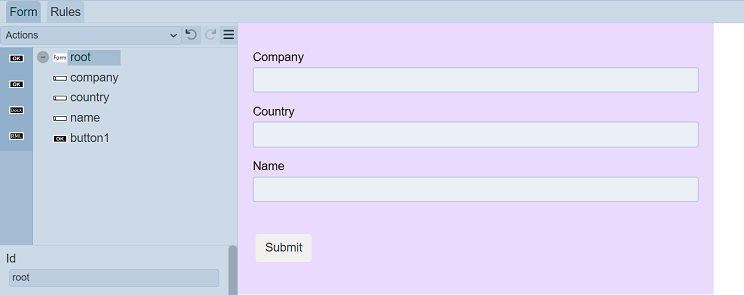 First, create the form with three Text components and a Button Bar component. Change the Ids of the Text components as shown.
