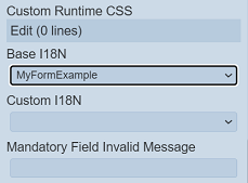 In the Form module, select the root component and scroll to the “Base I18N” field and select the translation created earlier from the drop-down list. Doing this will allow this base settings to be applied to many forms. If just this one form needs translation, select the translation from the drop-down list in the “Custom I18N” field.