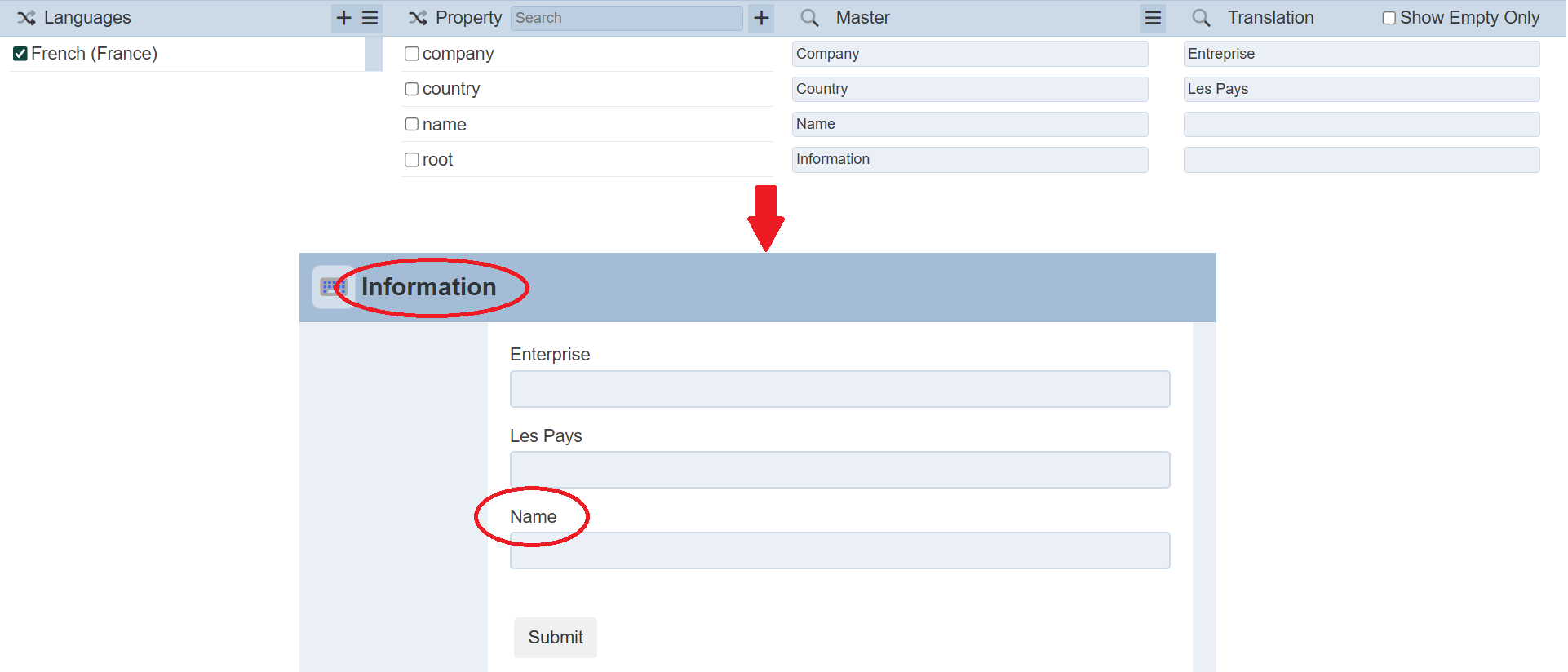 Do note that the settings in “Custom I18N” field will override the settings in the “Base I18N” field. Below is how the lookup works at form runtime: