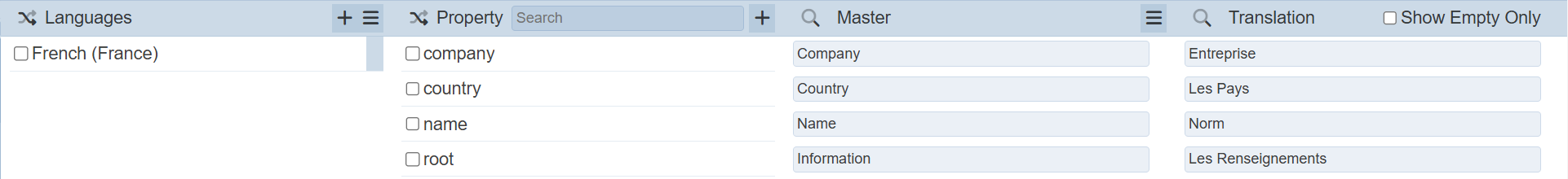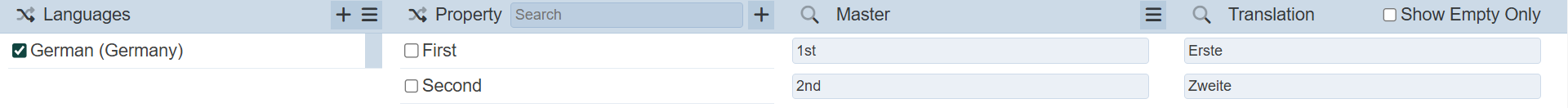 If any of the translation text are left blank, the master data in the Master panel will be used.