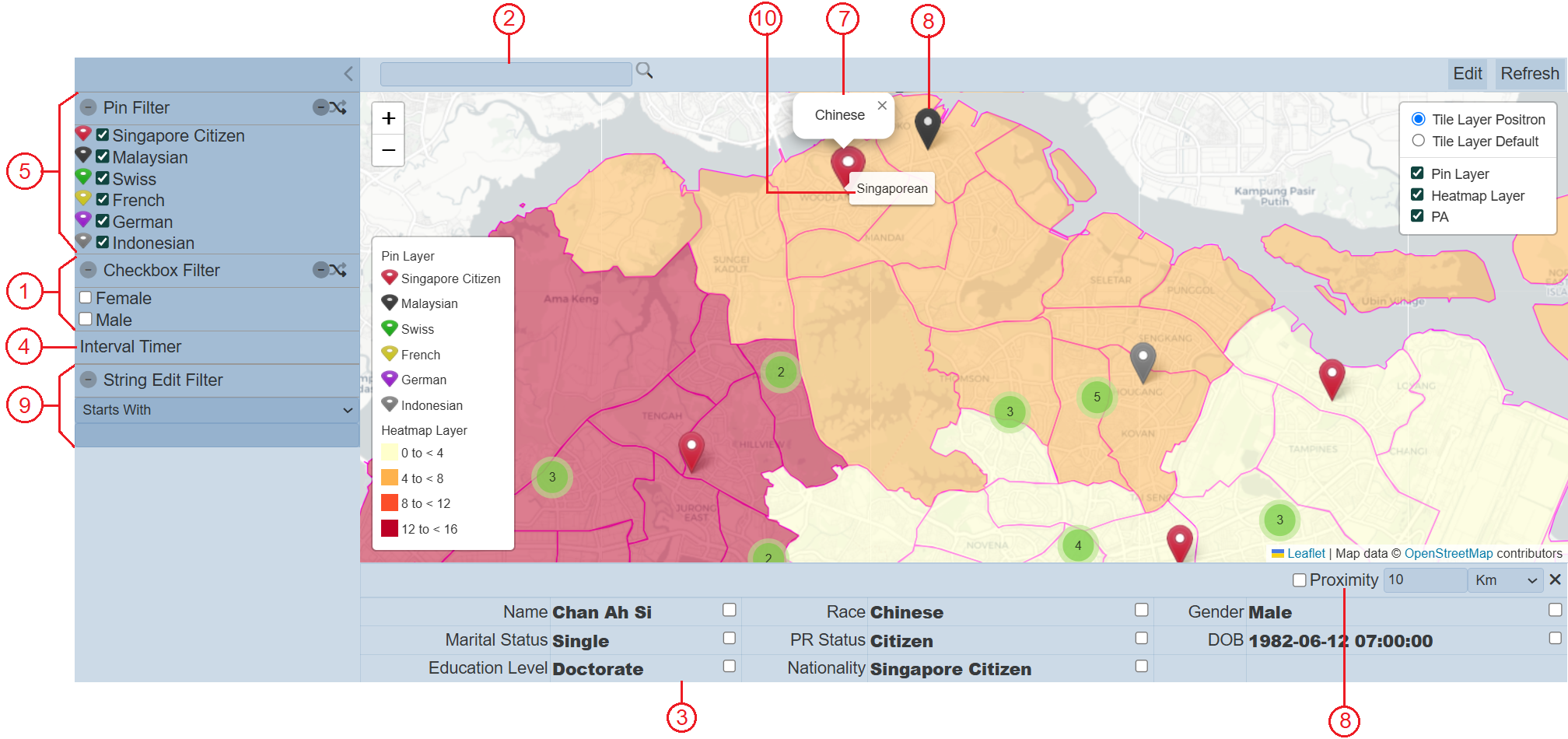 It is useful to create and add the filter controls to the pin layers to customize and control the information of the pins. Such as colour of the markers, information to be displayed in the Information Panel of a marker, a popup when hovering over a marker, etc.