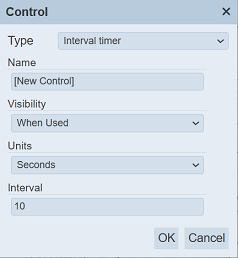 icon on the left of the filter control to display the “Control” dialog box. In the “Type” field, select “Interval Timer” from the drop-down list. The fields in the dialog box changes according to your selection.