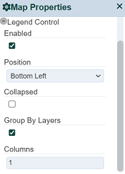 | Group By Layers | If selected, groups the legend by layers on the map. | Checkbox | Selected |