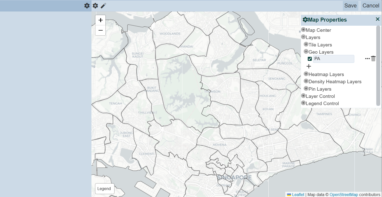 It may not be desirable to display the legend on the map all the time as it may obstruct the view of the map. In this case, you may want to collapse the legend by selecting the “Collapsed” field. In this way, the legend will only be displayed when hovered over.