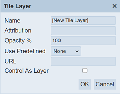 | Name | Unique name of the tile layer. | Text field | Any text | “[New Tile Layer]” |
