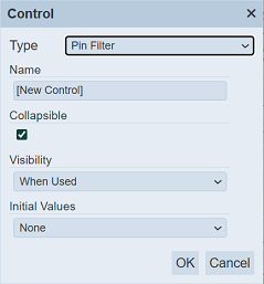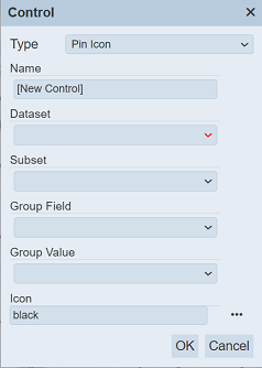 icon on the left of the filter control to display the “Control” dialog box. In the “Type” field, select “Pin Icon” from the drop-down list. The fields in the dialog box changes according to the selection.