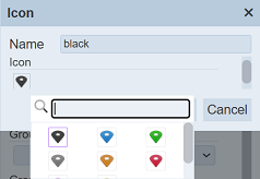 | Icon | Selects the colour of the pin icon. | Popup dialog box | Select from popup dialog box | “black” |